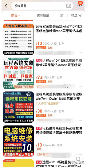 某宝上,装系统这个商品,一单10块,月销2000-10000单以上,你算算多少收益,很多时候,对于我们做互联网的,安装个系统真的很简单,但就是有人不会。在我们的意识里,总认为所有人都知道,其实不然,一个信息,放眼全国,至少上亿人不知道。真的就是学会一门技术活,一直饿不死。